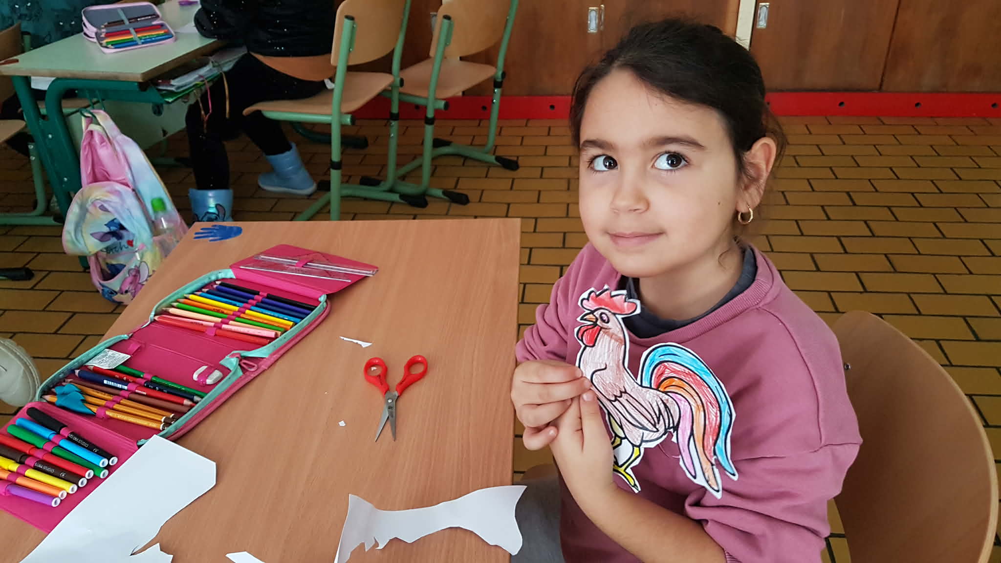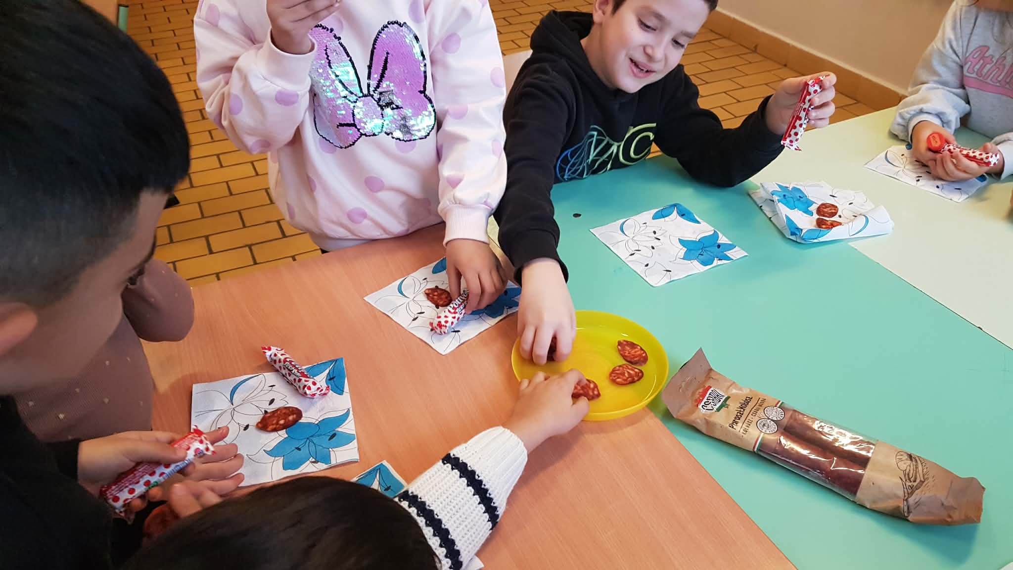 Az elsősök közös versmondással indították a foglalkozást, majd tanult magyar népdalokat énekeltek, A kiskakas gyémántfélkrajcárja című magyar népmesét meghallgatták és le is rajzolták a mese helyszíneit, jeleneteit. A hungarikumok közül sokat megismertek: kalocsai virágmintás kancsót színeztek, megkóstolták a híres Csabai kolbászt és a Túró Rudit, magyar kutyafajtákat gyűjtöttek.